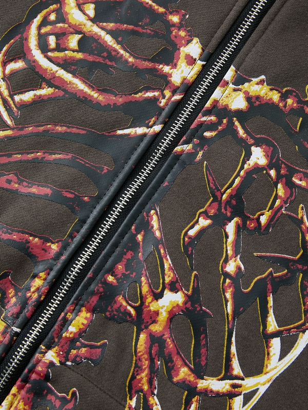 Skelettdruck: Stand Heben Sie sich mit diesem auffälligen Skelett-Print auf der Vorder- und Rückseite von der Masse ab und zeigen Sie einen Street- und Cool-Touch, der sich perfekt für lässige Anlässe und Hip-Pop-Events eignet.