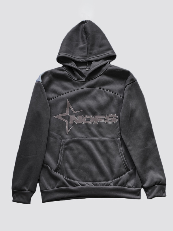 Übergroßer Kapuzenpullover mit Stern-Schriftzug und langen Ärmeln für Herren