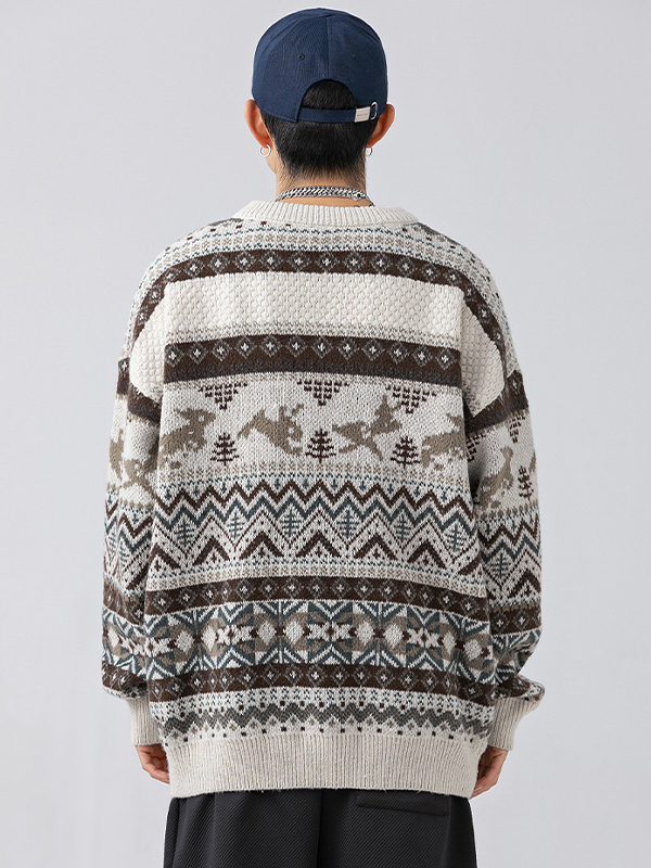 Beschreibung: Mit diesen Cabincore-Pullovern kommt man nie aus der Mode. Inspiriert von Fair-Isle-Mustern, hat eine entspannte Silhouette, lange Ärmel und gerippte Abschlüsse.