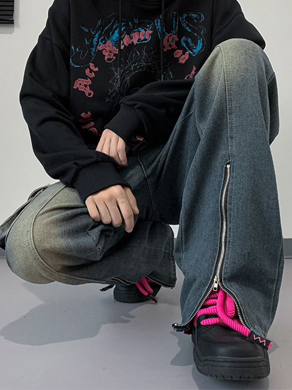 Zip Up Slit: Der Reißverschlussschlitz verleiht dieser Jeans eine moderne und kantige Note, perfekt für alle, die gerne mit ihrem Stil experimentieren und sich von der Masse abheben.