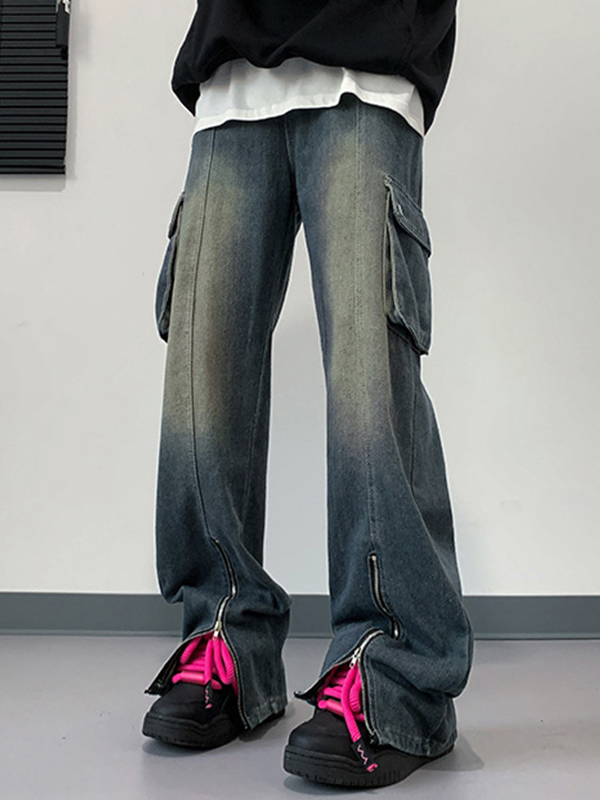 Herren-Cargojeans mit Reißverschluss und Schlitz und Pattentasche