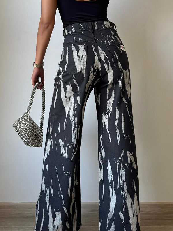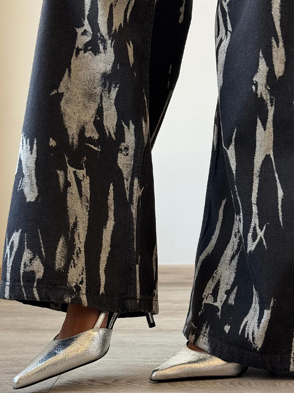 Lockere, gerade geschnittene Boyfriendjeans im Batik-Stil