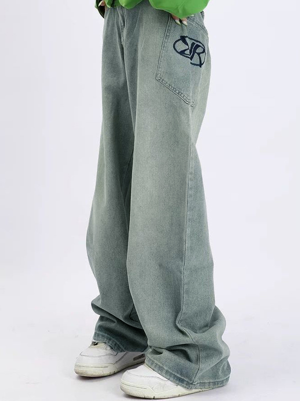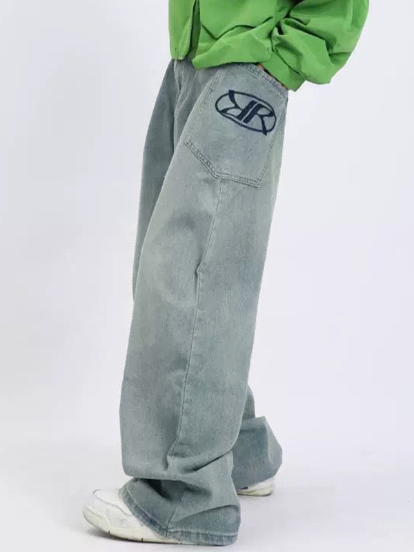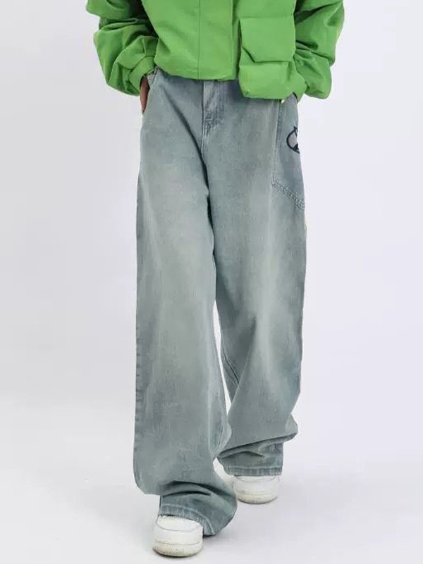 Lose lockere Baggy-Jeans für Herren mit verwaschenem Aufdruck