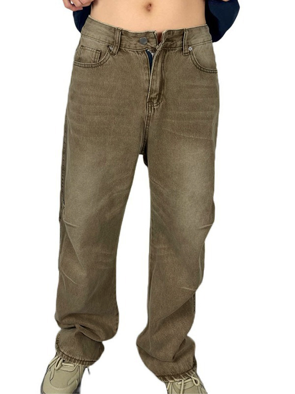 Vintage geraffte Low-Rise-Boyfriend-Jeans