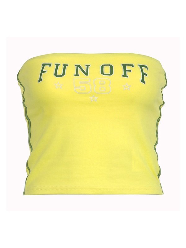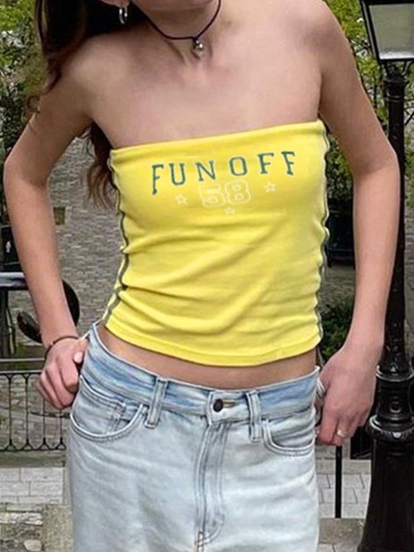Ärmellänge: Ärmellos< br />Auffälliger Buchstabendruck: Dieses Bandeau-Top verfügt über einen auffälligen und auffälligen Buchstabendruck, der Ihrem Outfit einen lustigen und verspielten Touch verleiht.