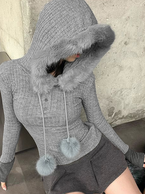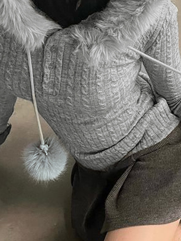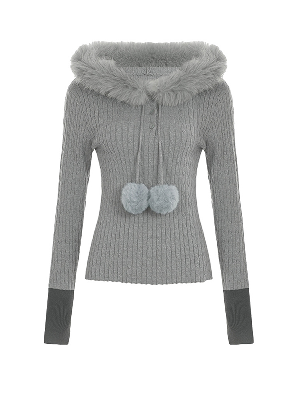 Schreibe die erste Bewertung für „Langärmliger Strick mit Kapuze und Raw Edge in Kontrastfarbe“