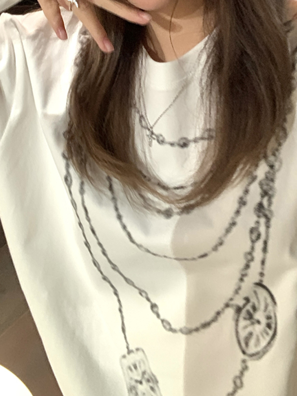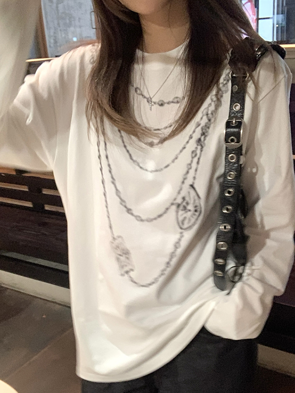 Chain Print Oversized Long Sleeve Tee