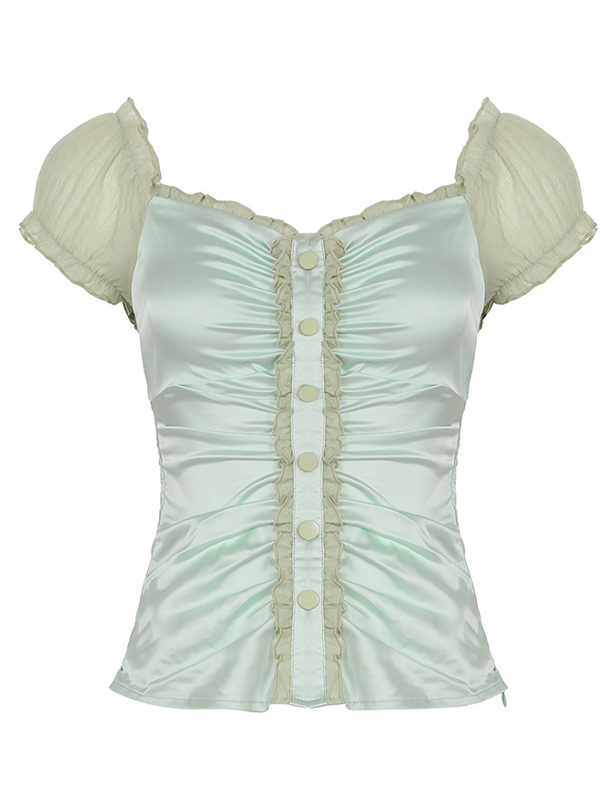 Kurzärmliges T-Shirt mit Rüschen aus Mesh-Patchwork